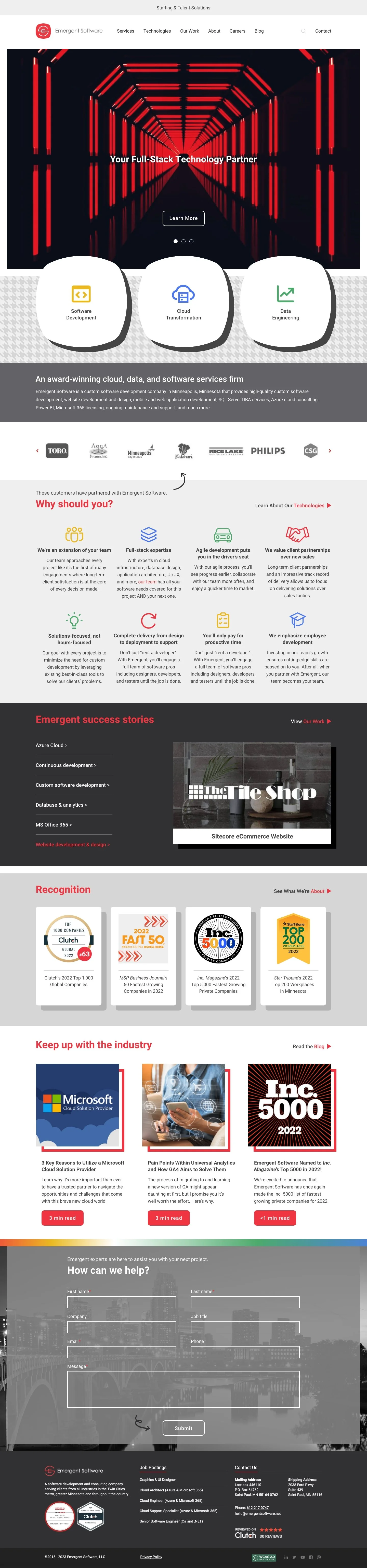 Emergent Software proposed homepage redesign | 1400 px